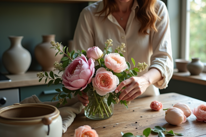 L'association inattendue de pivoines et de dahlias dans un bouquet n'est jamais…