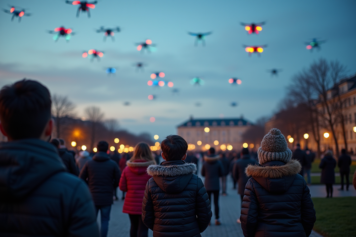L’effet d’un spectacle drones lumineux sur une ville est indéniable. Les organisateurs cherchent avant tout à frapper les esprits : le show drones devient alors une signature visuelle puissante lors des moments clés.