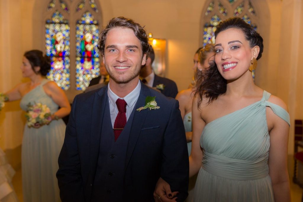 - Les témoins et la procession d’honneur arrivent ensuite : garçons et filles d’honneur avancent par duo, formant une jolie haie d’honneur pour les mariés.